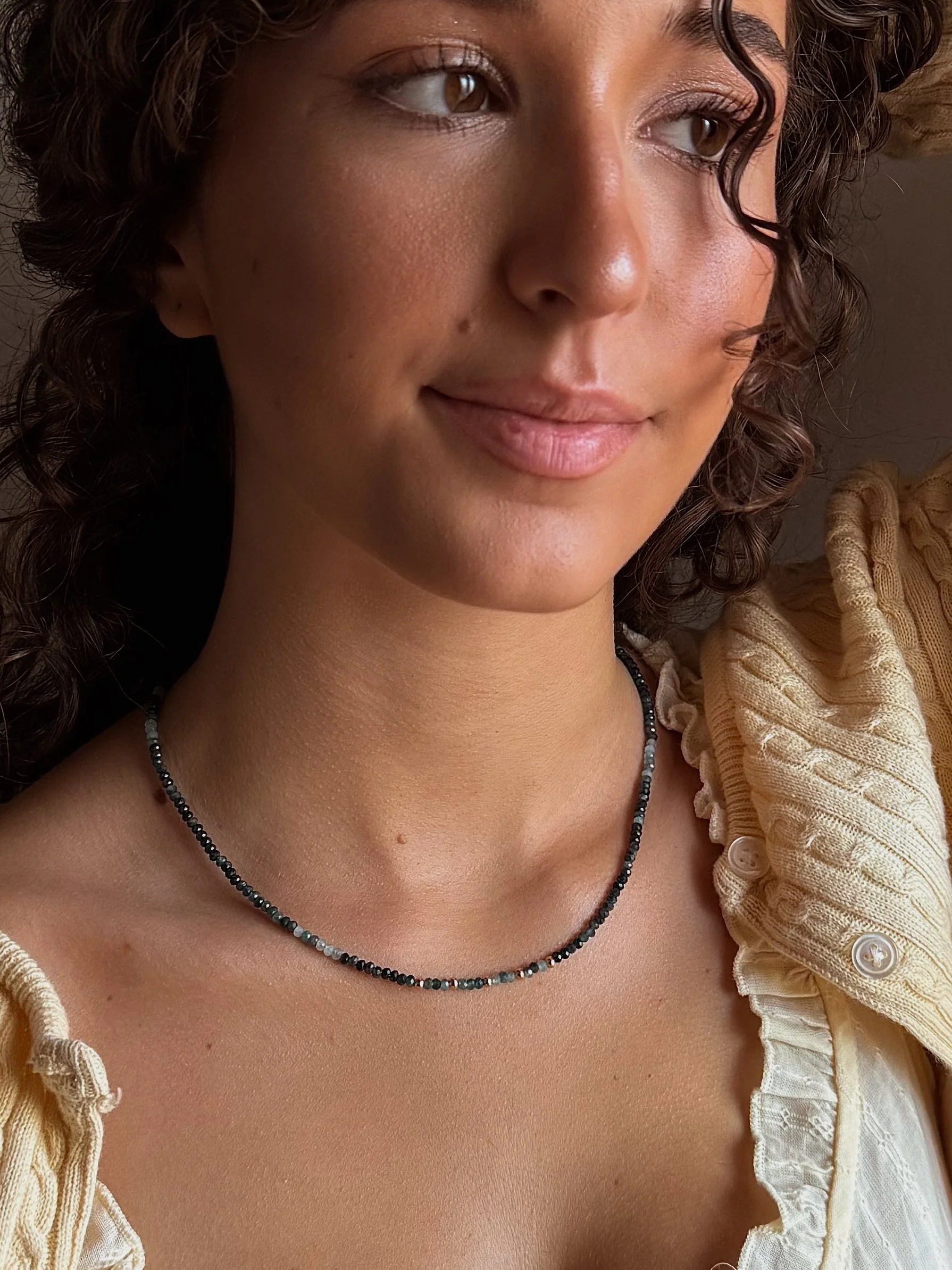 HIBISCUS Necklace Jade + Herkimer Diamond