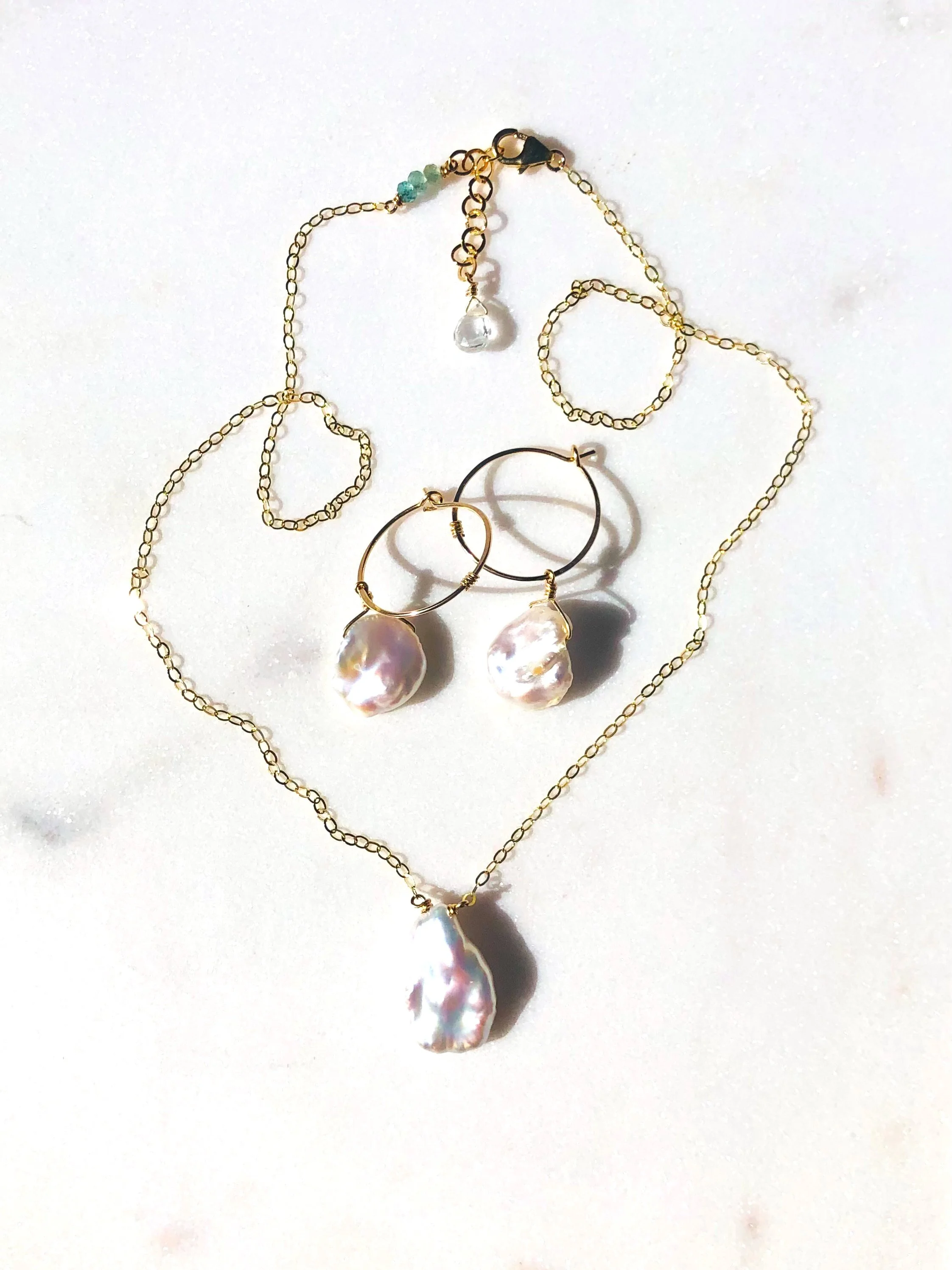 PETITE BRISE Anklet Pearl + Aquamarine